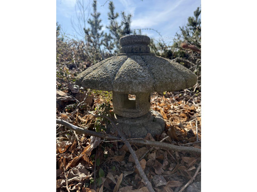 Japonská lampa Misaki Tóró, šedá žula, výška 40 cm, průměr hlavy 40 cm