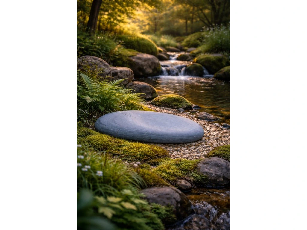 Solitérní kámen ze šedého mramoru. Můžete ho použít jako nášlapný kámen - šlapák nebo okrasný kámen k jezírku.